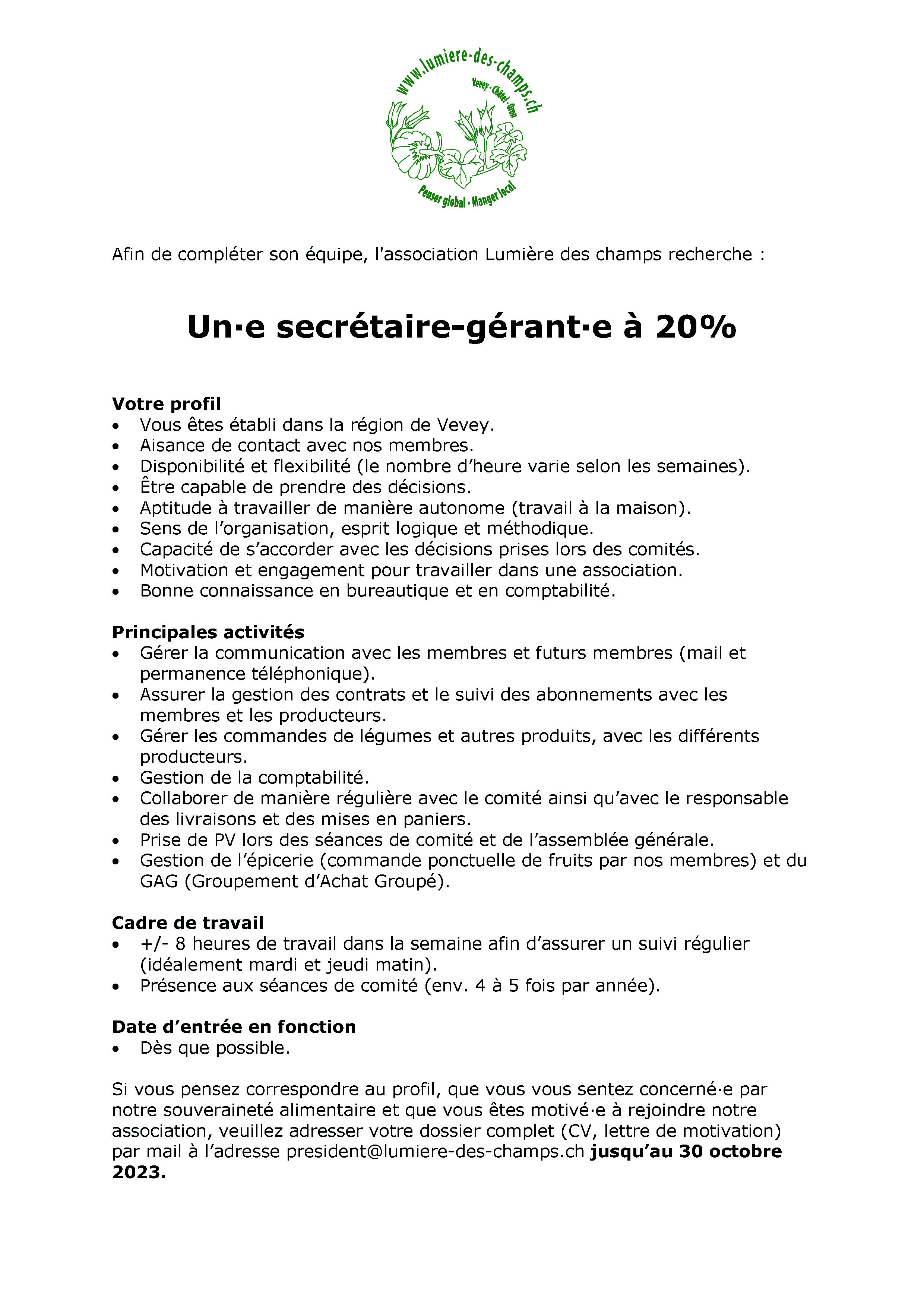 L'association recherche un*e nouveau*lle secrétaire gérant*e