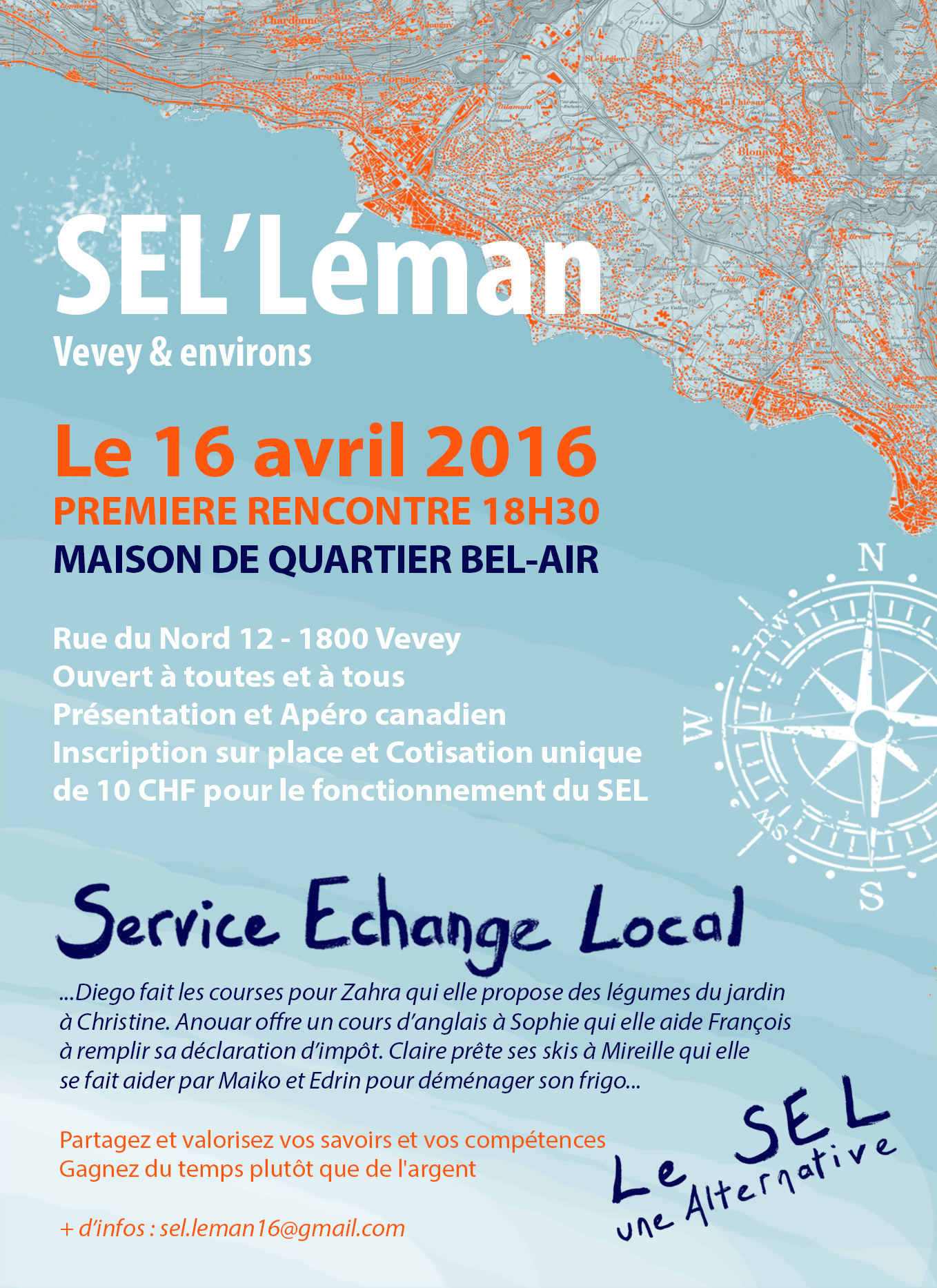 Nous vous annonçons le lancement officiel du SEL ! (Service d'Echange Local) Partagez sans modération et venez nombreux/nombreuses à la première rencontre le 16 avril prochain !