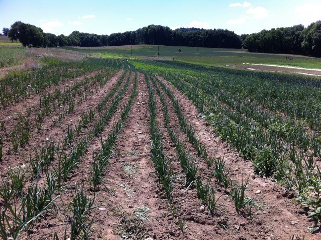 Sûr que les oignons auront un goût particulier quand ils arriveront dans notre panier: nous les avons désherbés !
